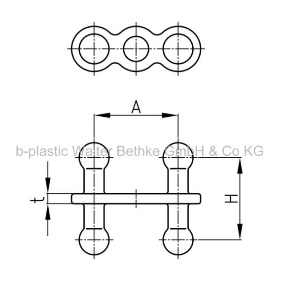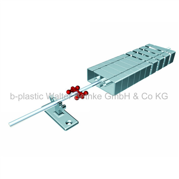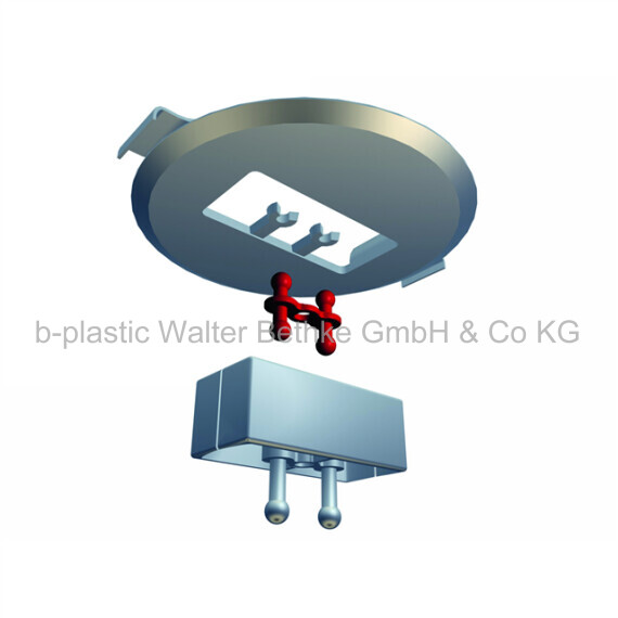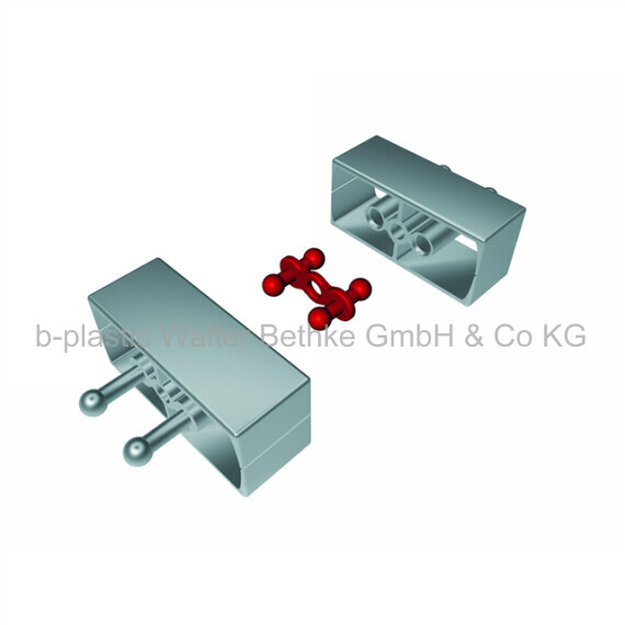 Universalkupplung aus PP zur richtungsunabhängigen Verbindung fast aller KBK Systembauteilen, wenn diese "mit dem Rücken" zueinander stehen.
