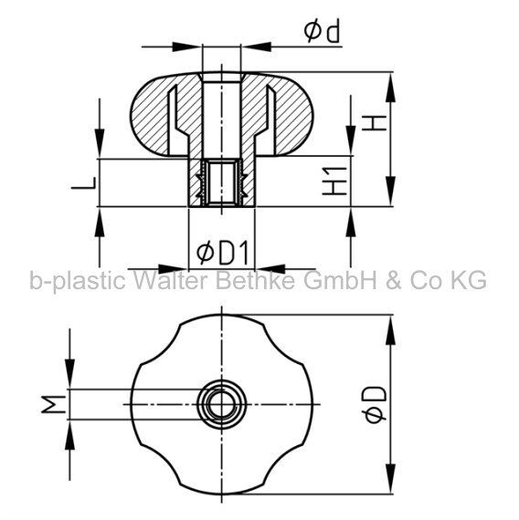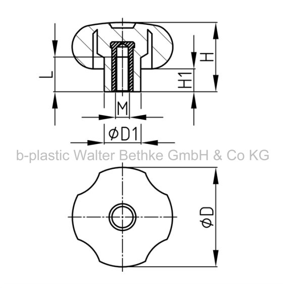 Kreuzgriffe aus PP mit umspritzter Gewindebuchse