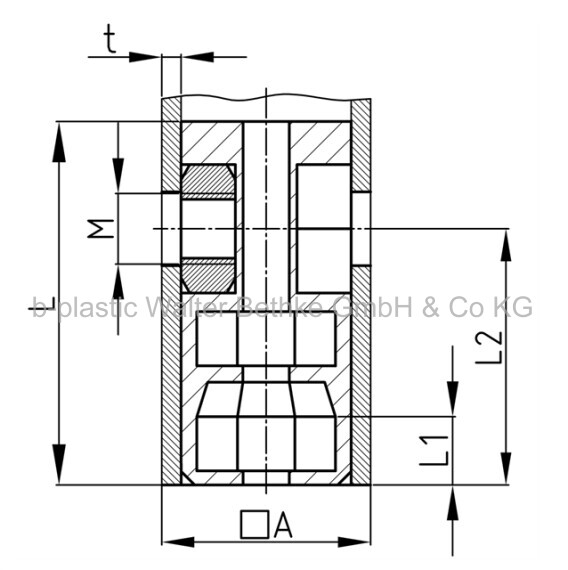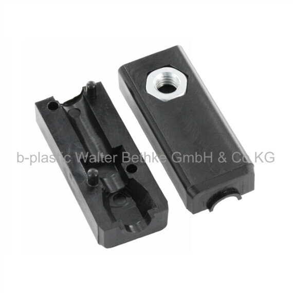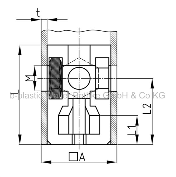 Schraub-Eckverbinder ohne Bund aus PA für Vierkantrohre, mit einer glanzverzinkten Sechskantmutter
