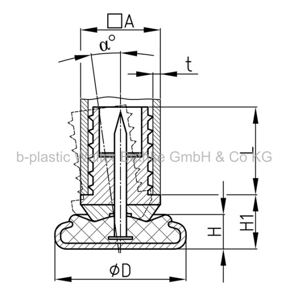 Articulated-glides made of polyethylene for square tubes with metal slide base