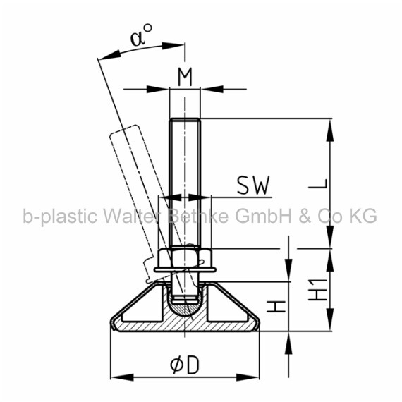 Articulated-glides with plastic ball made of PE, stainless steel slide base and thread bolt
