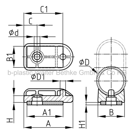 • Safe positioning and fixing via two frame bores - only one connecting element required.