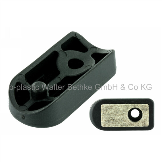 Shell glides made of polyamide with felt-sliding surface for tube-based cantilever and skid-base chairs