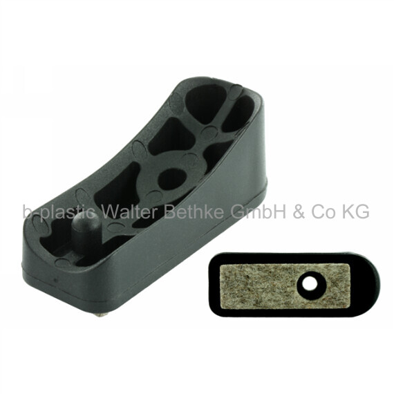 Shell glides made of polyamide for tube-based cantilever and skid-base chairs with felt-sliding surface for different bending radii