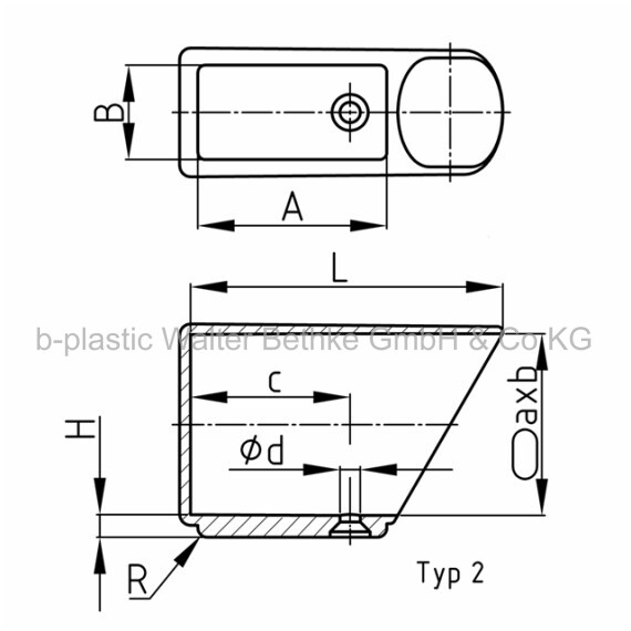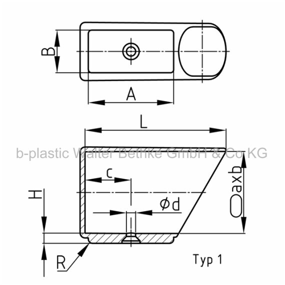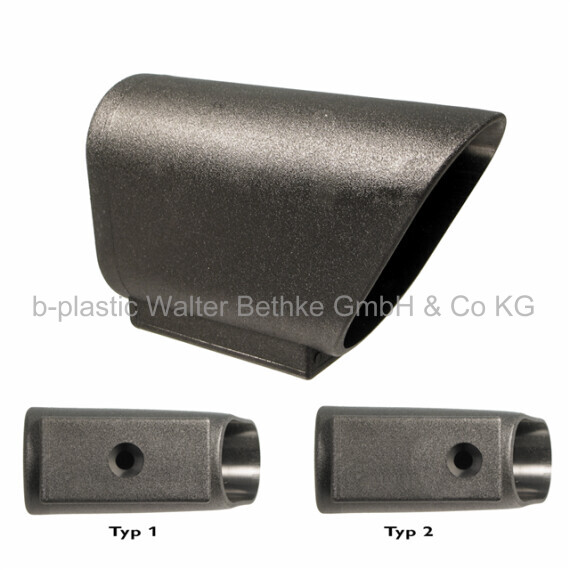 Oval angled sliding caps (step protection, tilting radius) made of PA 6 for finishing cantilevers