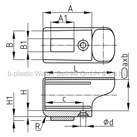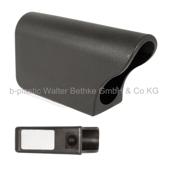 Oval angle sliding caps made of PP with welded plastic base for ends of traverses