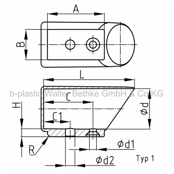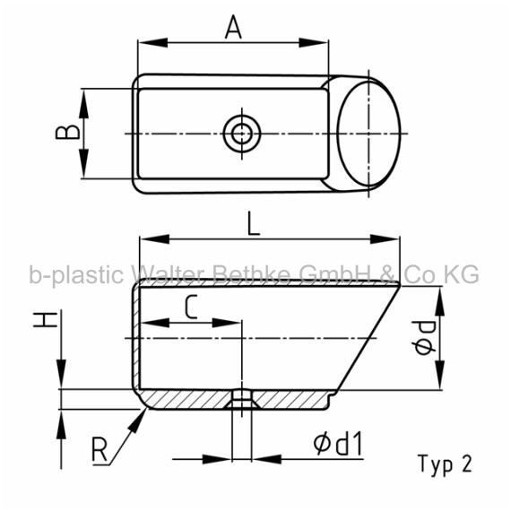 Round angled sliding caps (step protection, tipping radius) made of PA 6
