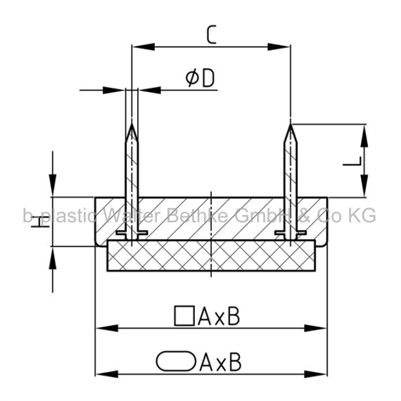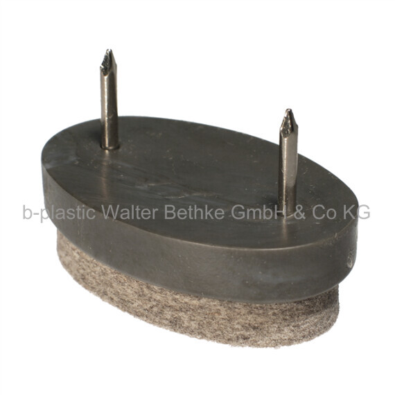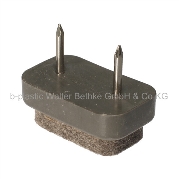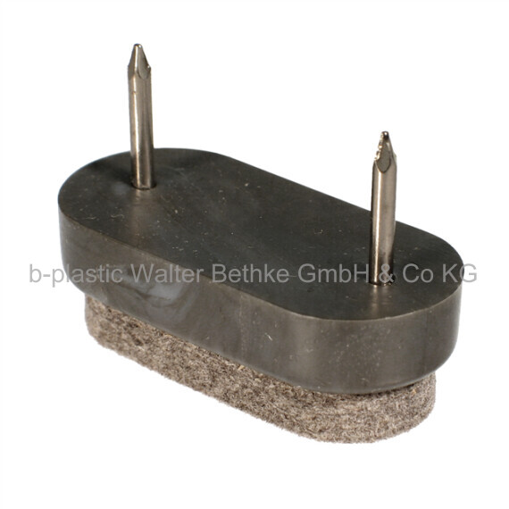 Furniture glidesmade of impact-resistant poystyrene with two nails and felt gliding surface