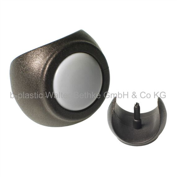 Ellipsoid-shaped clamping shell glides made of PA 6 with PTFE sliding surface