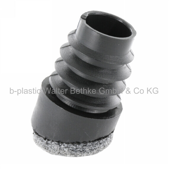 Inclined lamella glides made of PE for round tubes with welded felt for furniture and frames