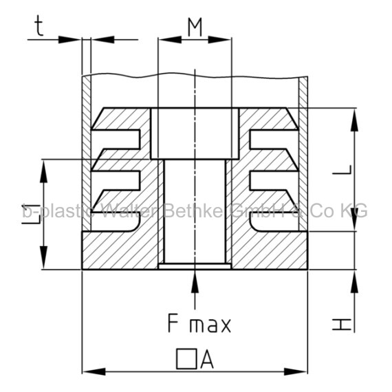 Threaded plugs made of PA for square tubes with injected plastic thread