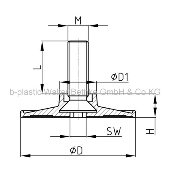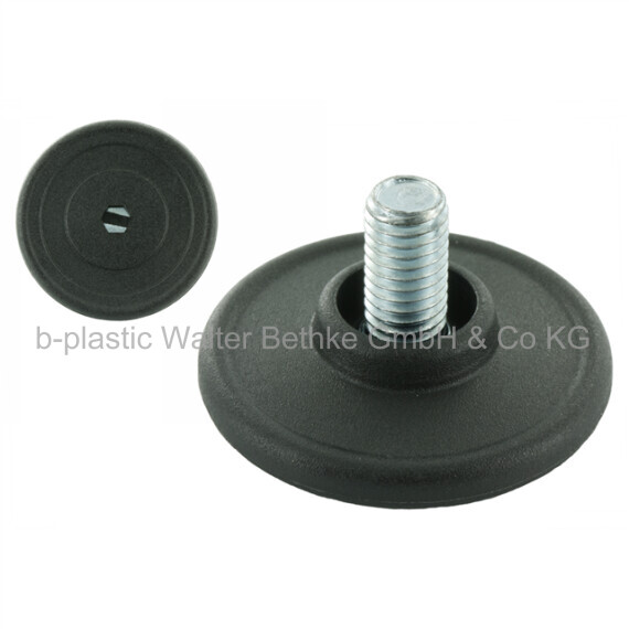 Adjusting screws with round plastic base made of PP