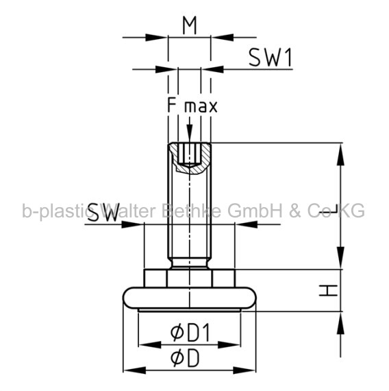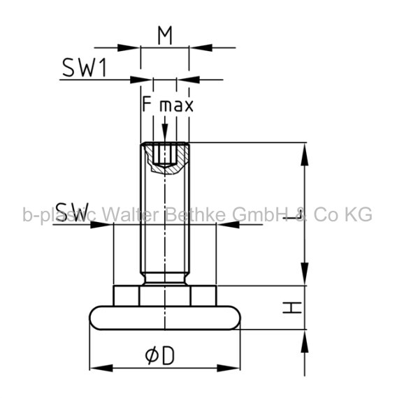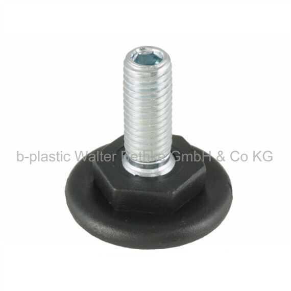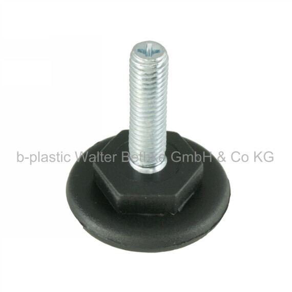 Adjustable screws with round plastic foot and moulded hexagon made of PP and hexagon in the threaded end