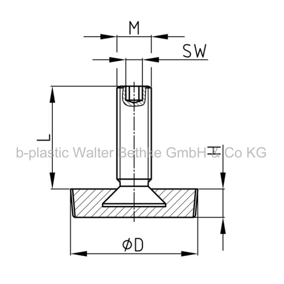 Adjusting screws with knurled plastic base made of PA and hexagon inside the thread end, thread bolt overmoulded