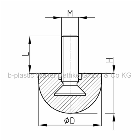 Zinc-plated adjustable screws with hemispherical plastic base made of TPE