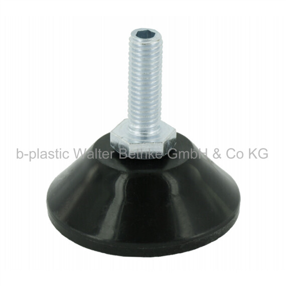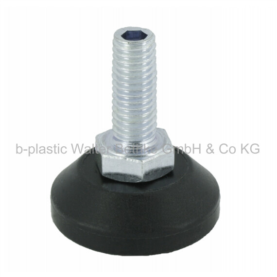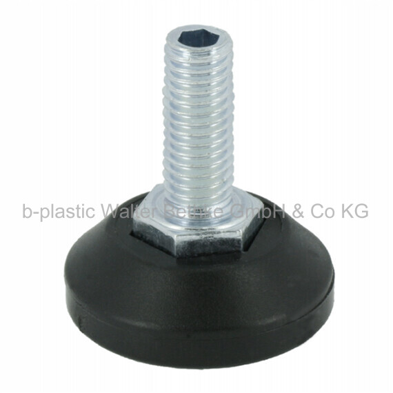 Adjustable feet made of PP with hexagonal adjusting screw and with hexagon in the thread end