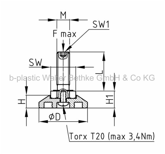 • As mounting aid Torx T20 in the plate (max. torque 3.4 Nm)