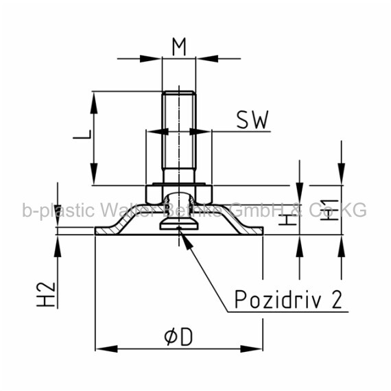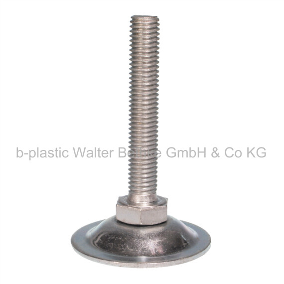 Adjustable feet made of galvanised steel with hexagonal adjustment screw, swivel base