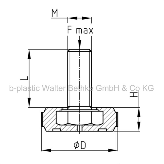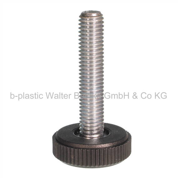 Adjusting screws with knurled plastic base made of PA and overmoulded threaded bolt