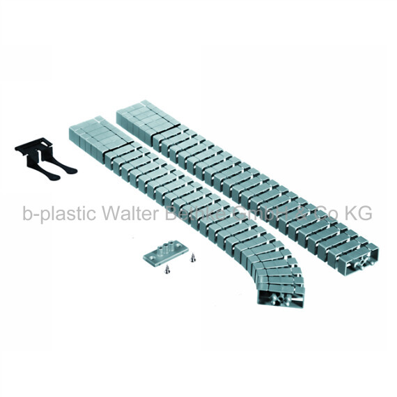 • The pushed together, rigid installation of the cable guide chain is conditionally suitable for low-traffic passage areas.