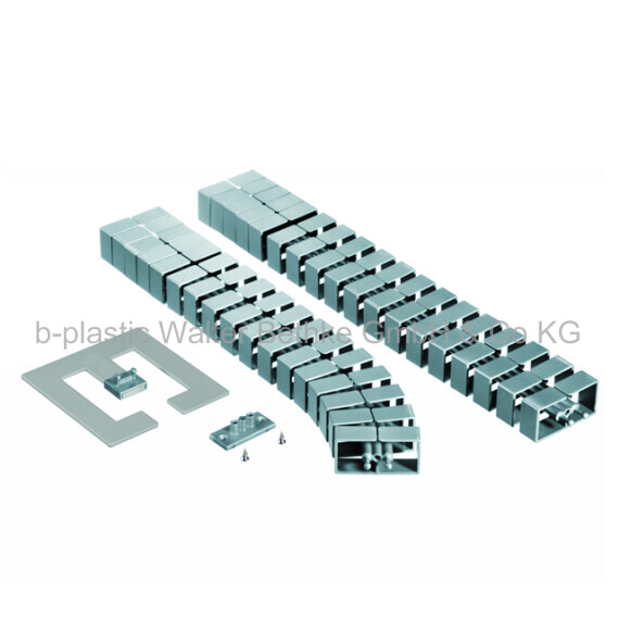 - The pushed together, rigid installation of the cable guide chain is conditionally suitable for low-traffic passage areas.