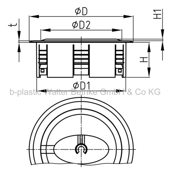 Floor outlet made of PP for vertical connection for one KBKPM cable routing system