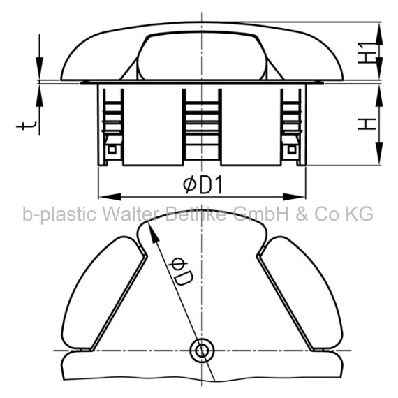 Floor outlet made of PP for vertical connection of three of the KBKCUB, KBKPRO, KBKCL or KBKFLII cable routing systems