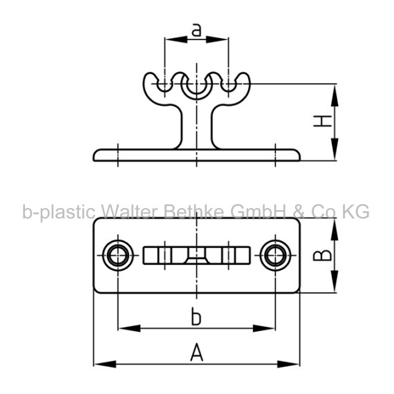• Mounting clip with catch pins for all KBK guiding systems with 2 plug appliances.