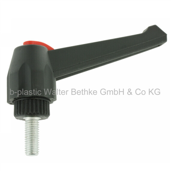 Clamping lever made of PA 6 with threaded bolt, adjustable with push button