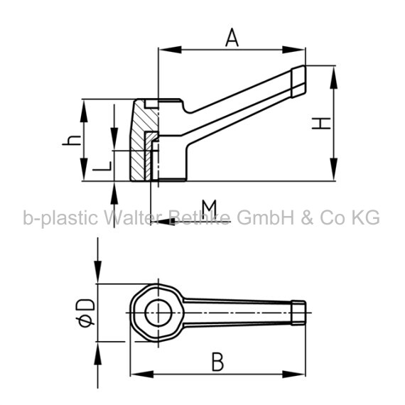 Clamping lever made of PA-GF with cover and brass threaded bush