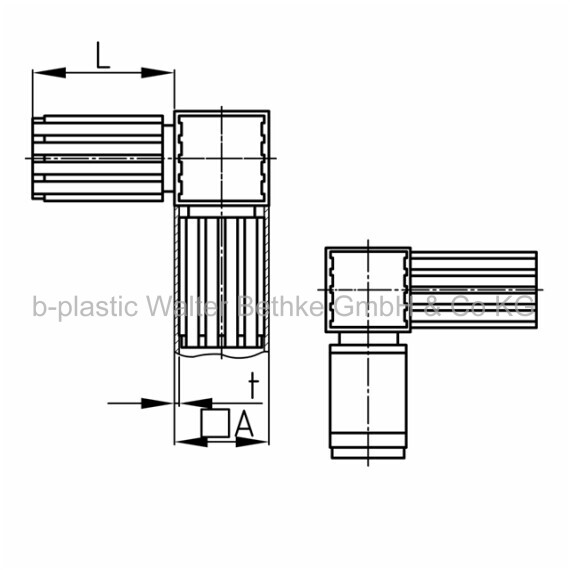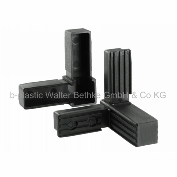 Connectors (right angle) made of PA for square tubes with outgoing unit