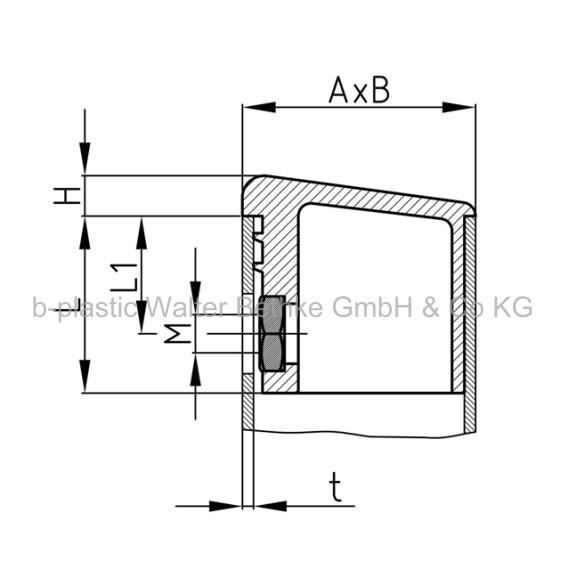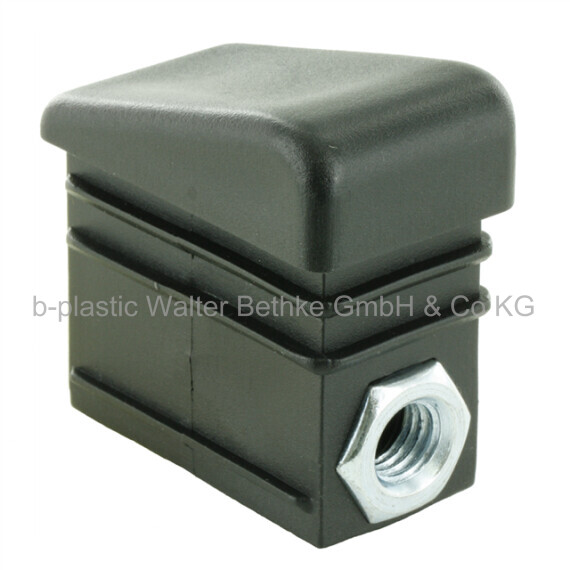Screw corner connectors with collar made of PP for rectangular tubes and assembled hexagon nut