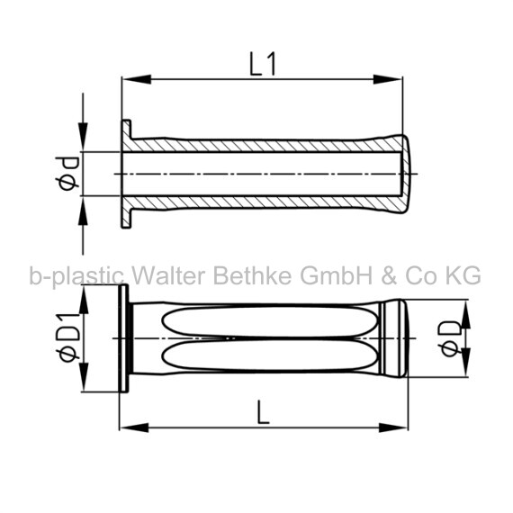 Tapered handle with border made of elasticated TPE