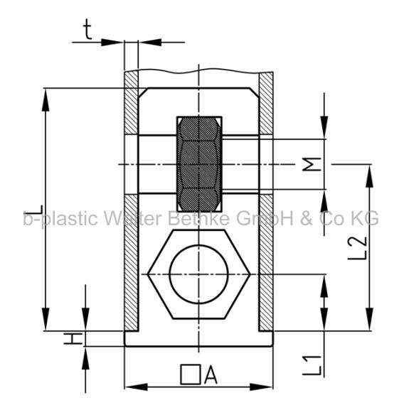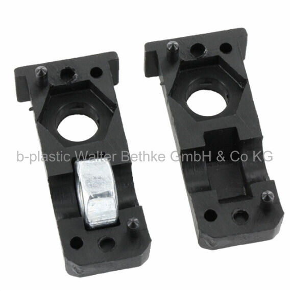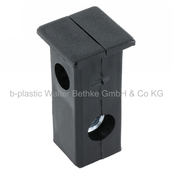 Screw corner connectors made of PA with collar for square tubes and bright galvanized hexagon steel nut (rear)