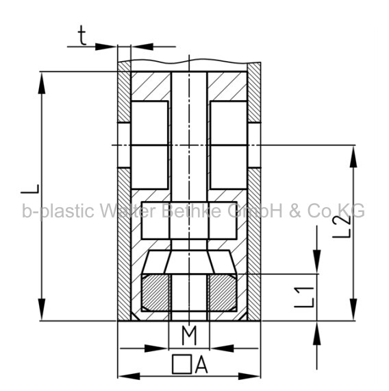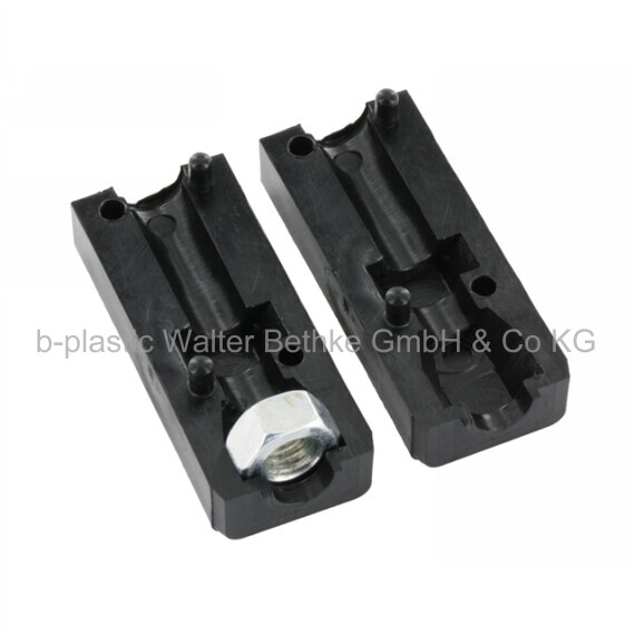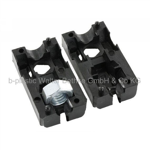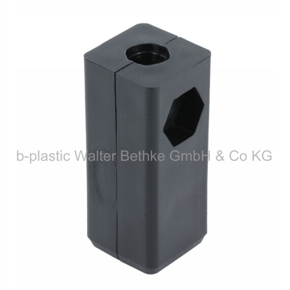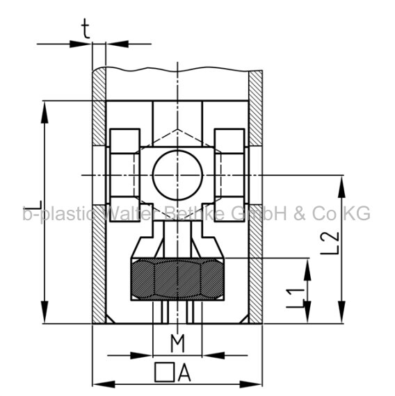 Screw corner connectors made of PA without collar for square tubes, with bright galvanized hexagon nut (rear)