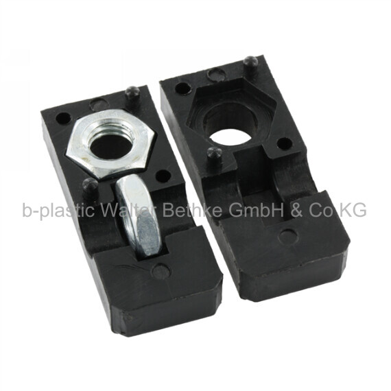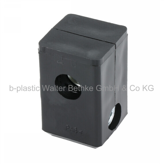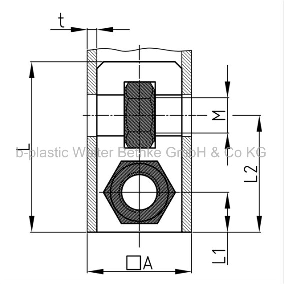Screw corner connectors made of PA without collar for square tubes, with two bright galvanized hexagon nuts