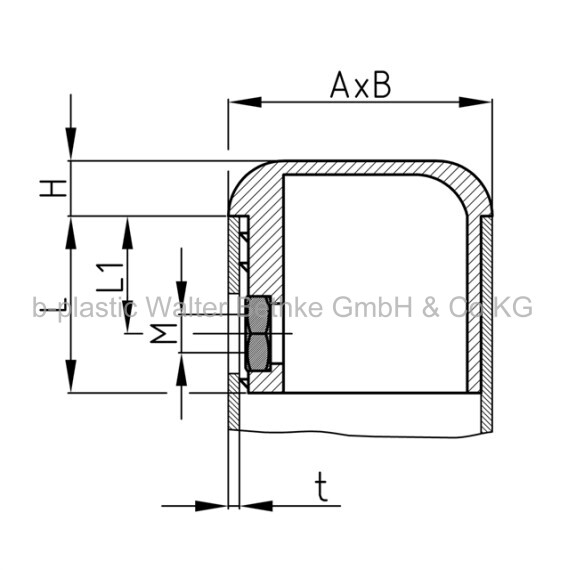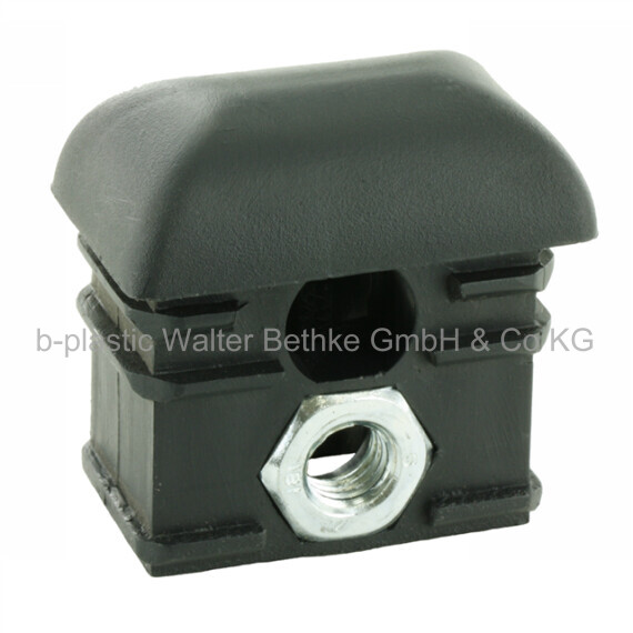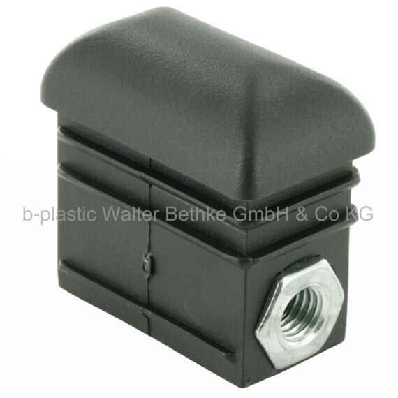 Screw corner connectors with collar made of PP for rectangular tubes and assembled hexagon nut