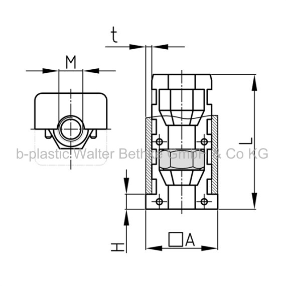 • These two-piece expander bushes with collar have conical chambers for hexagon nuts and screws. Tightening of the thread presses the outer wall of the insert against the inner tube wall (rawle plug effect). This effect requires entire tightening of the thread.