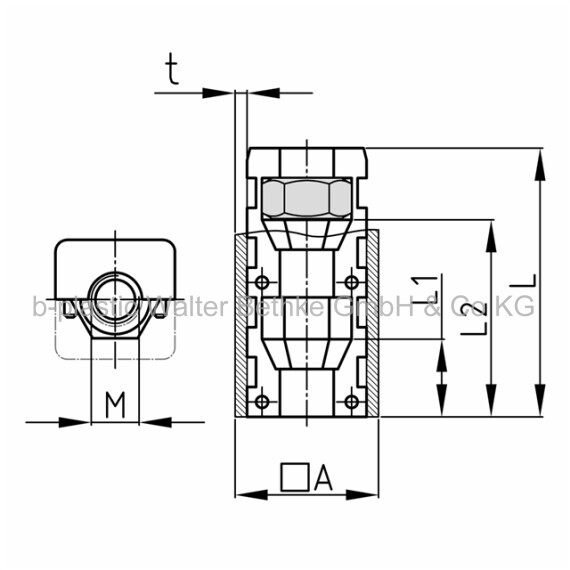 Assembled expander connectors without collar made of PA for square tubes with one hexagon nut (rear)