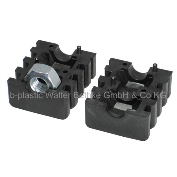Assembled expander connectors without collar made of PA for square tubes with one hexagon nut (in the front)