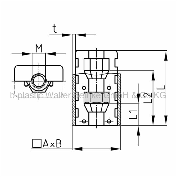 Assembled expander connectors without collar made of PA for rectangular tubes with one hexagon nut (in the front)
