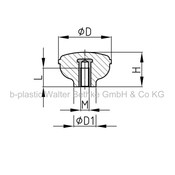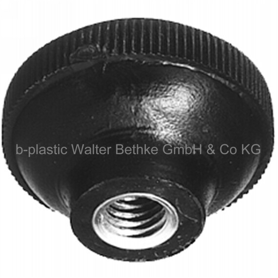 Knurled nuts made of PP with fine knurl and threaded bush (overmoulded)