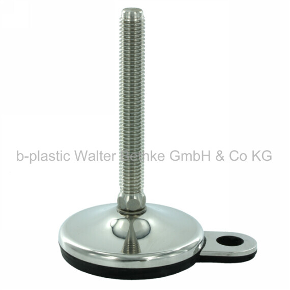 Machine feet made of stainless steel with fixing system and vulcanised rubber pad