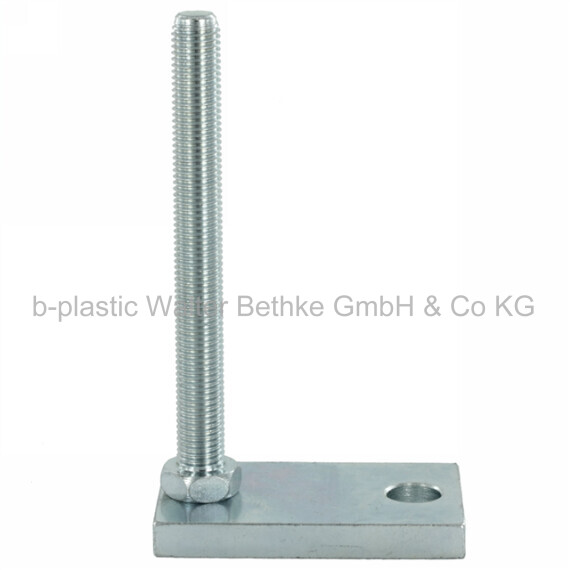 Machine feet made of zinced steel with rectangular base and fixing hole