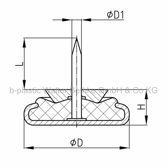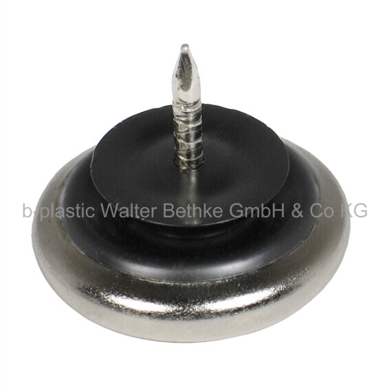 Nail glides with TPE-buffer and highly flexible nail (plastic joint) for extremley inclined furniture legs