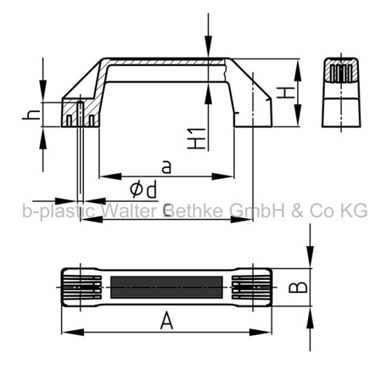 U-handle aus PA 6 with blind hole