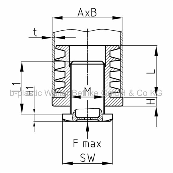Adjusting plugs made of PA 6 for rectangular tubes with one piece outer body and injection moulded thread