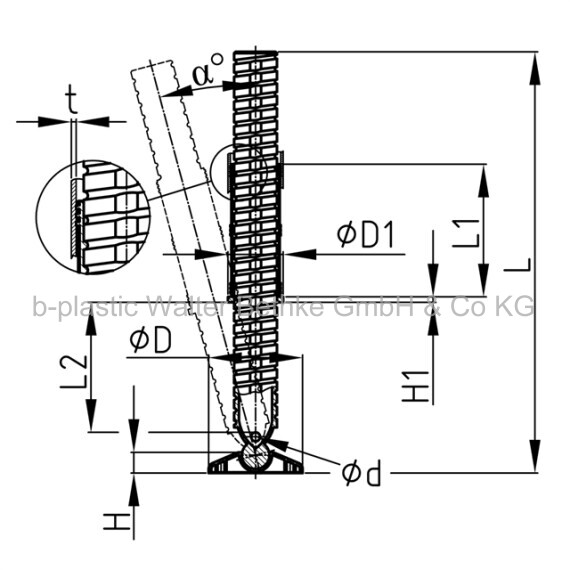 Heavy duty adjusting plugs made of PA-GF for round tubes with inclinable base
