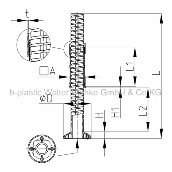 Heavy duty adjusting plugs made of ABS for square tubes with round base