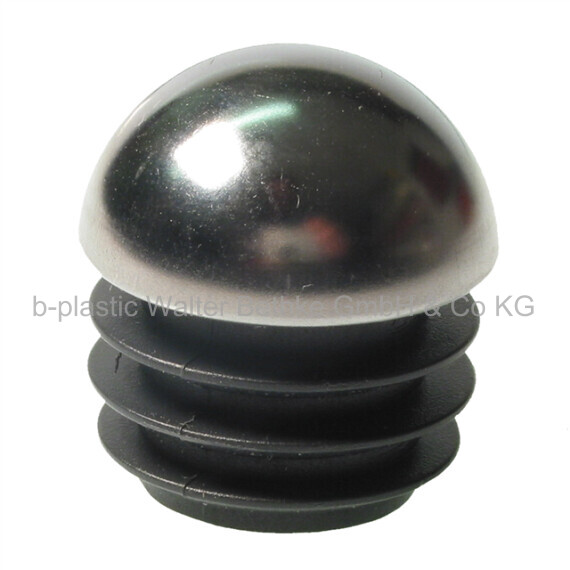 Lamella plugs with ball head made of PE and chrome-/nickel-coloured metal cover for round tubes